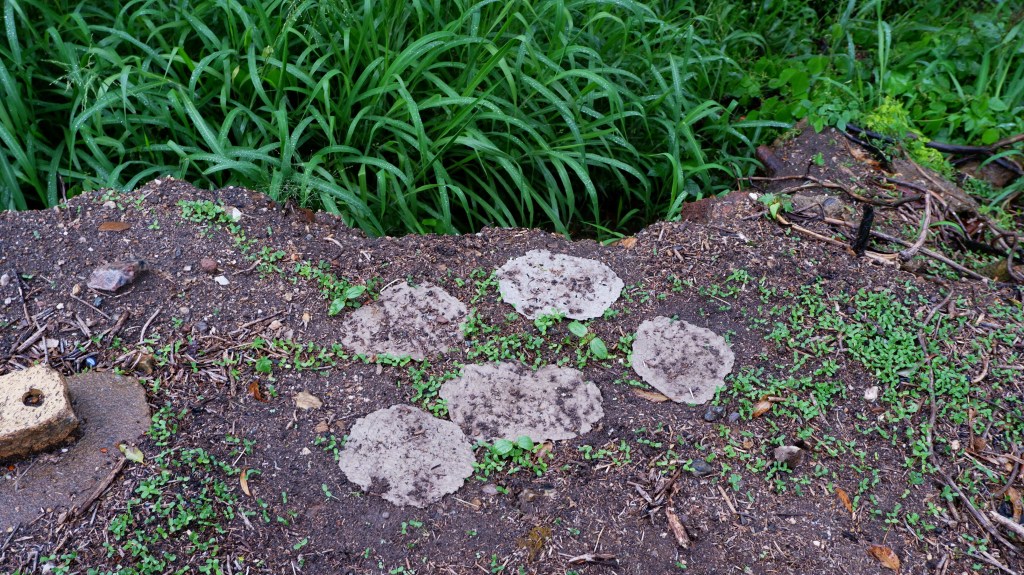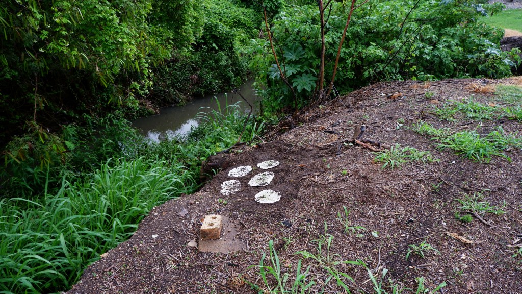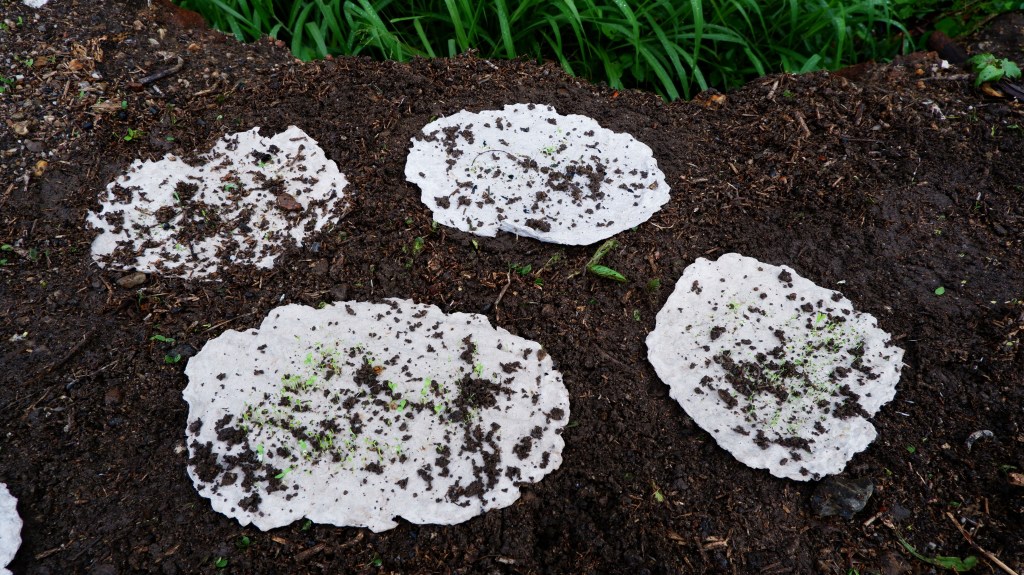 Plant Paper by Industrial Creek, recycled commercial paper-waste from Brisbane CBD and native flower seed mix partially buried in a creek bed