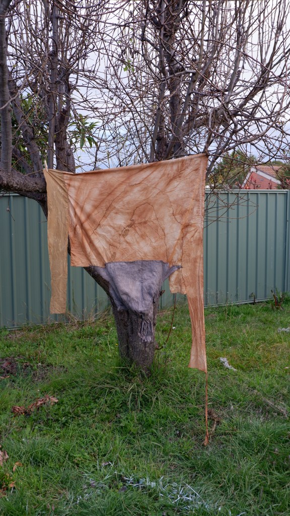 Hometown Trees and Canberra Rain, 2023, Gilgandra gum tree dye,